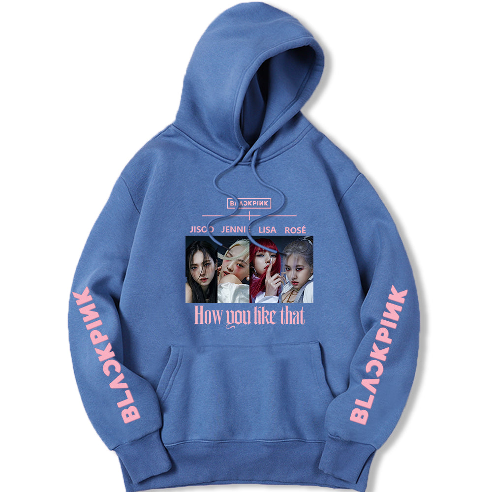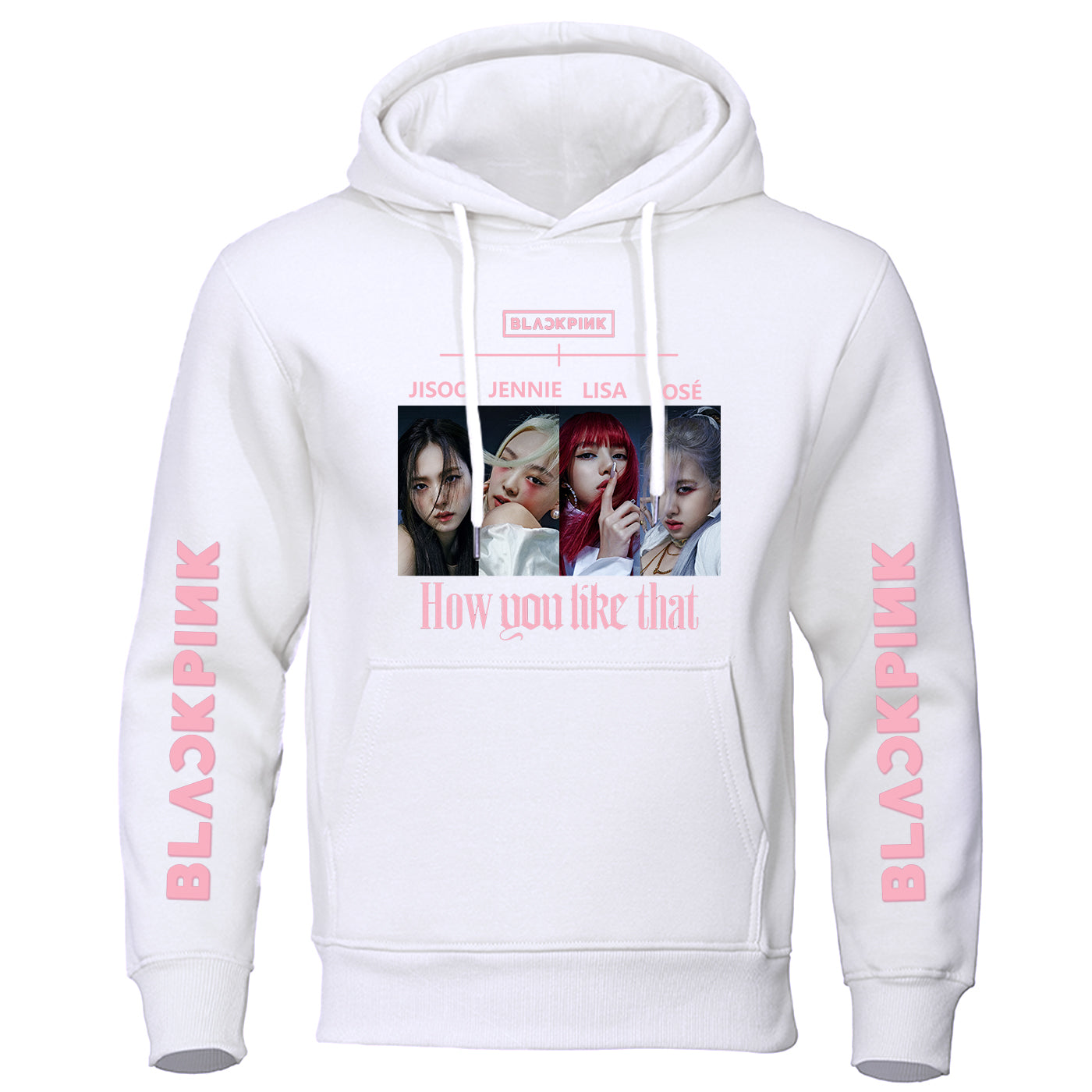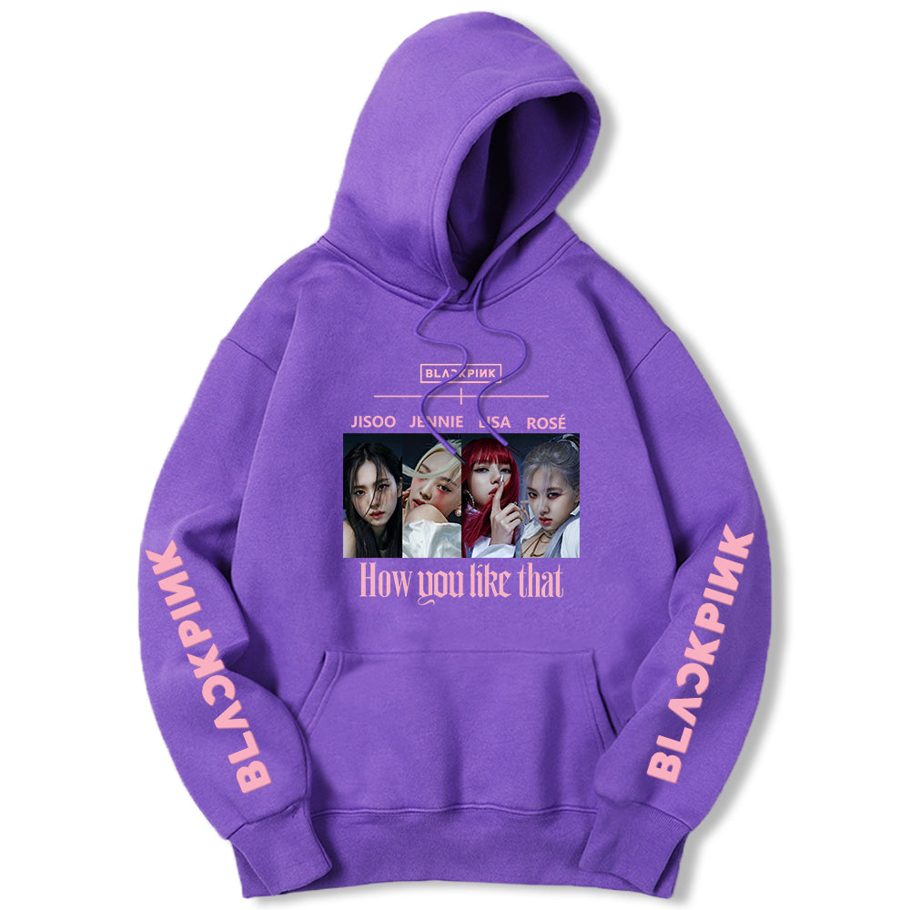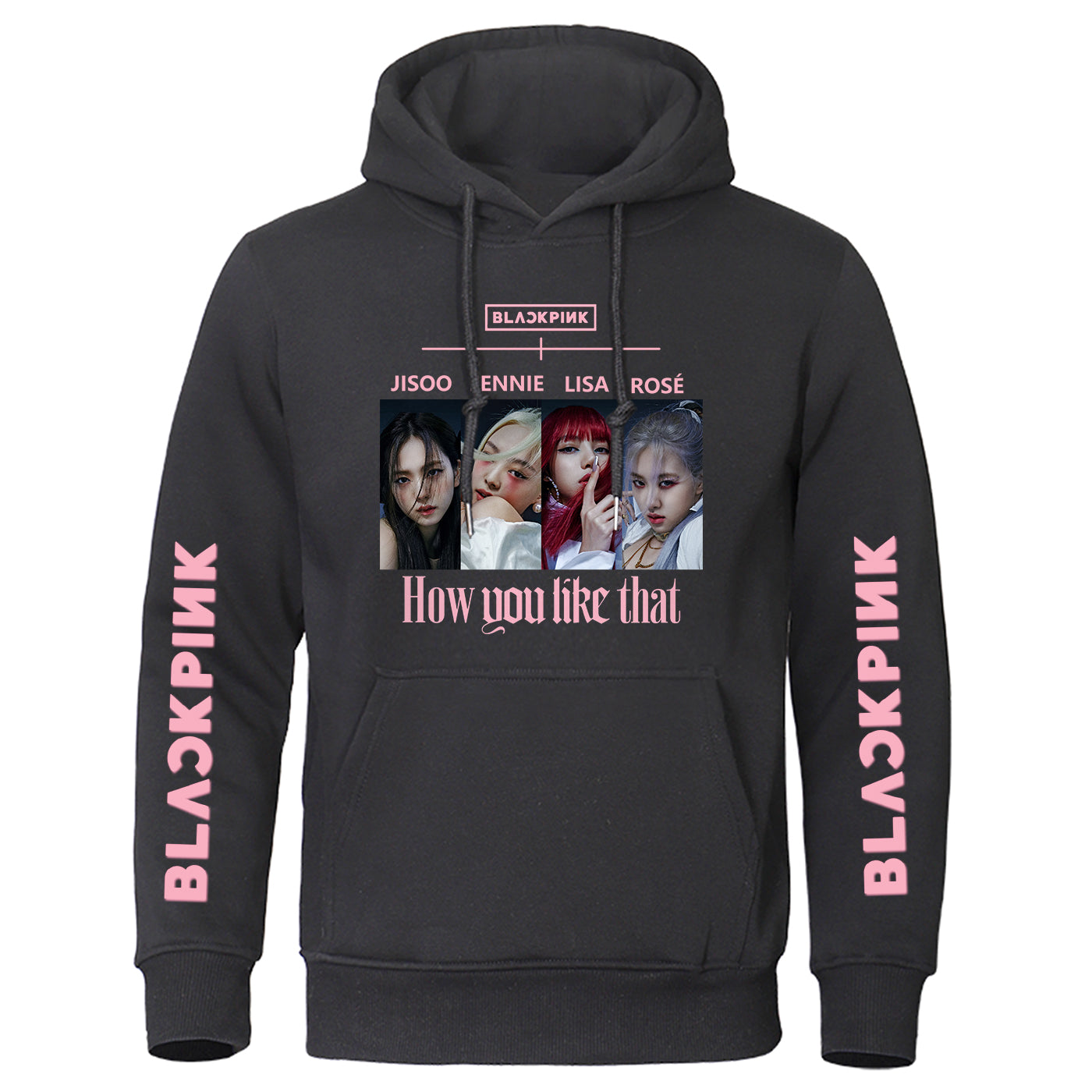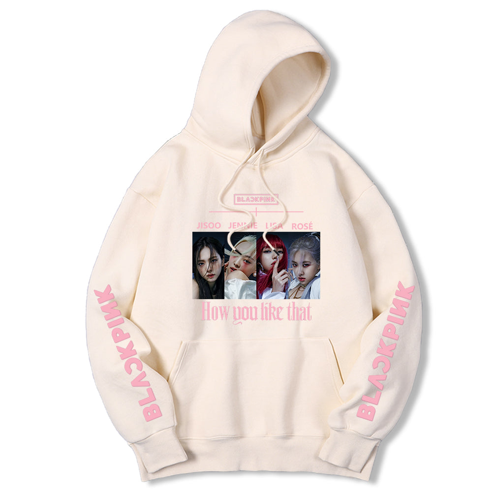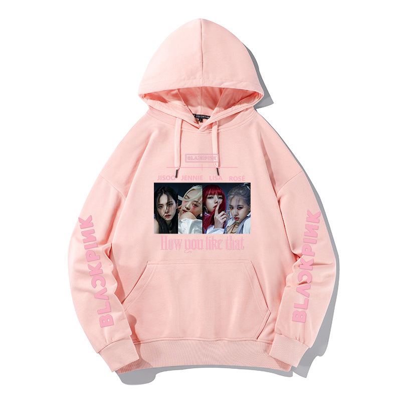 هودي قطني 100%، مع صورة "How you like that" لفرقة Blackpink على الجهة الأمامية.