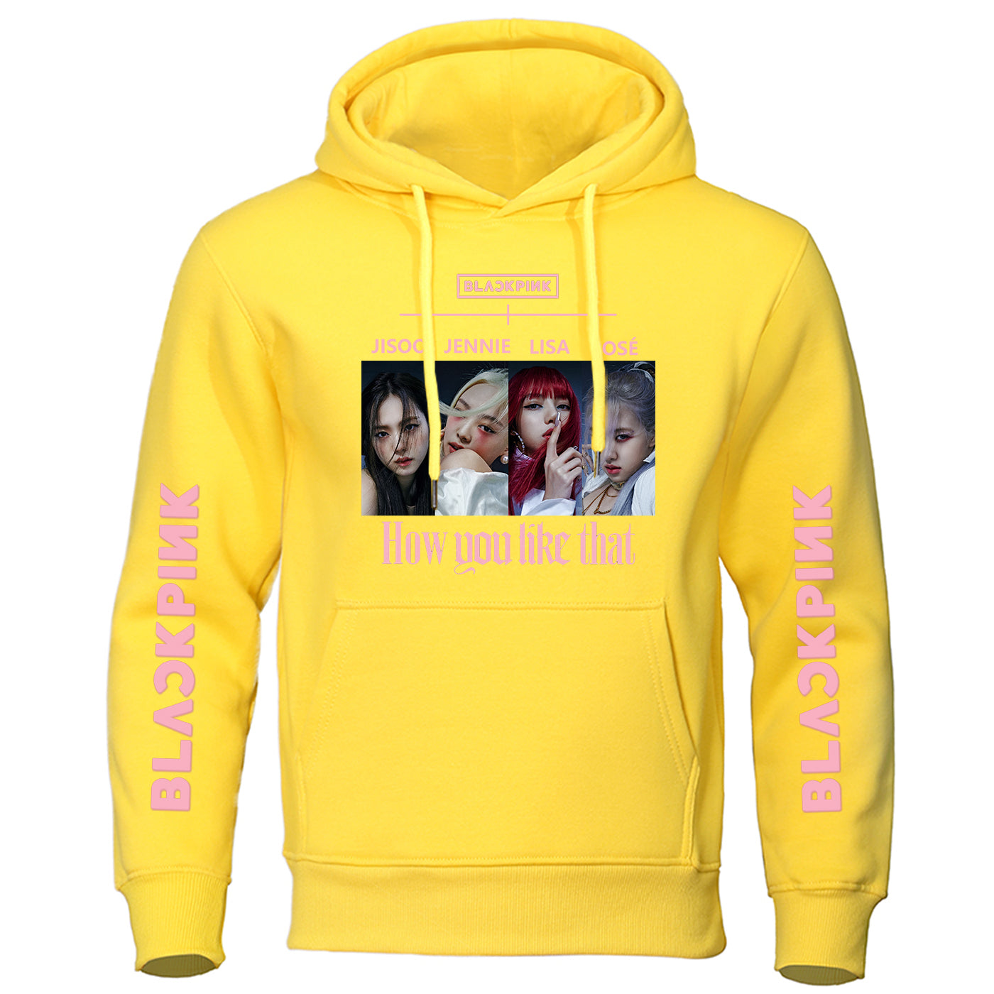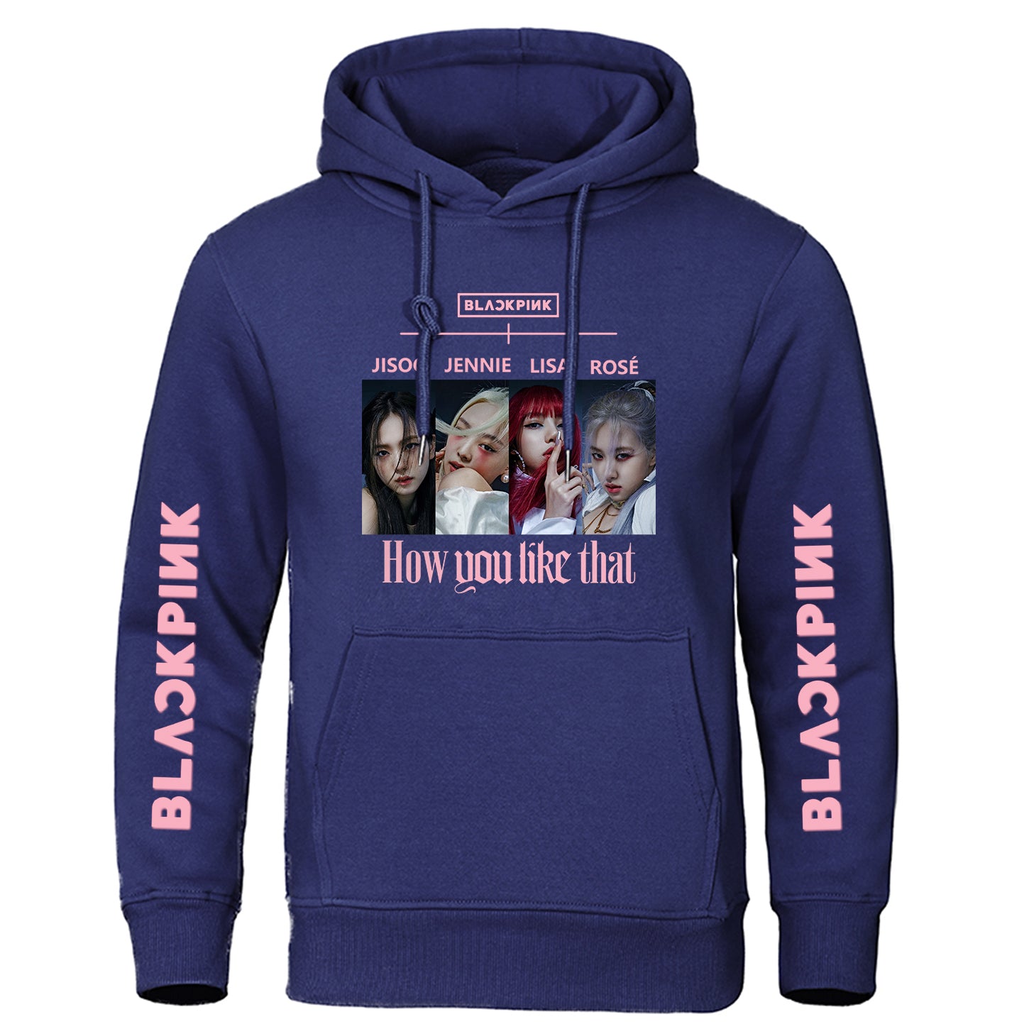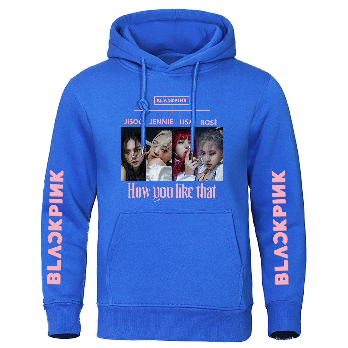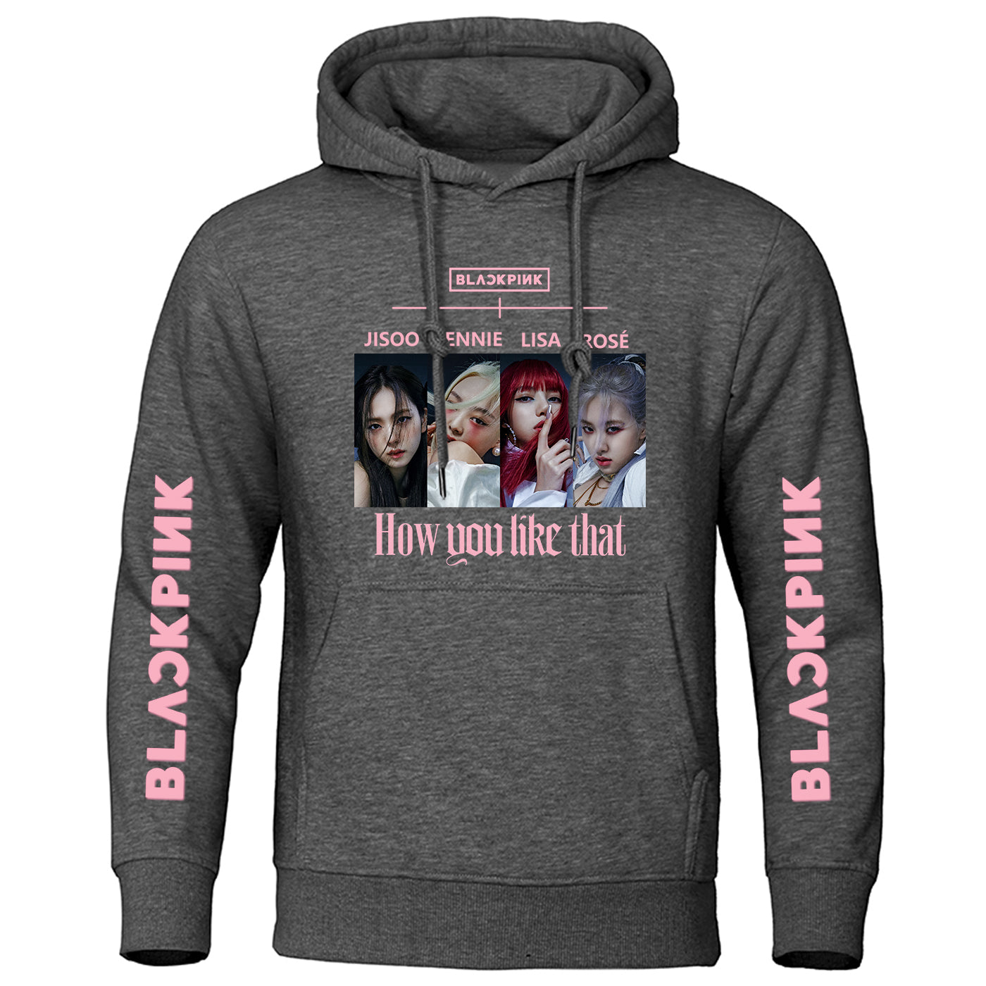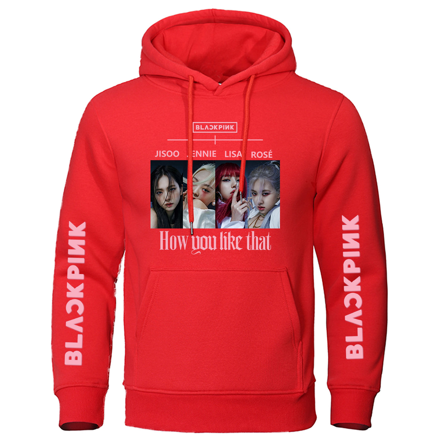 هودي قطني 100%، مع صورة "How you like that" لفرقة Blackpink على الجهة الأمامية.