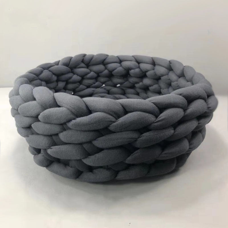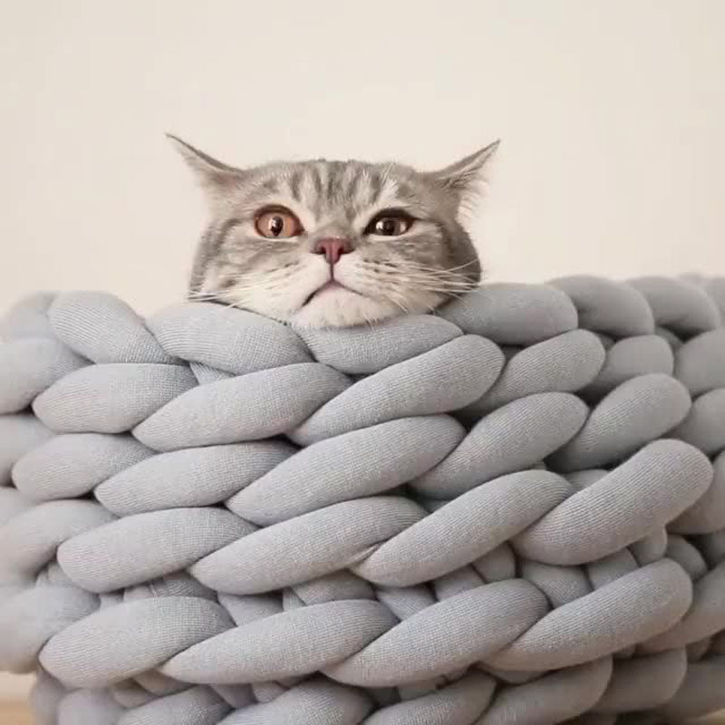 Cat Bed Pet House Fashion Woven Wool Cotton Cat Cave Basket Lazy Lounger